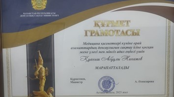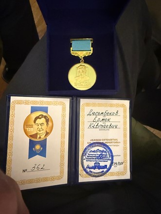 Presentation of the Rector Shoranov M. E. kaznsu im. S. D. Asfendiyarova awarded the medal “125th anniversary of Kanysh Satpayev” – the head of the Department of Neurosurgery Dusembekov Yermek Kavtaevich. 2025 year
